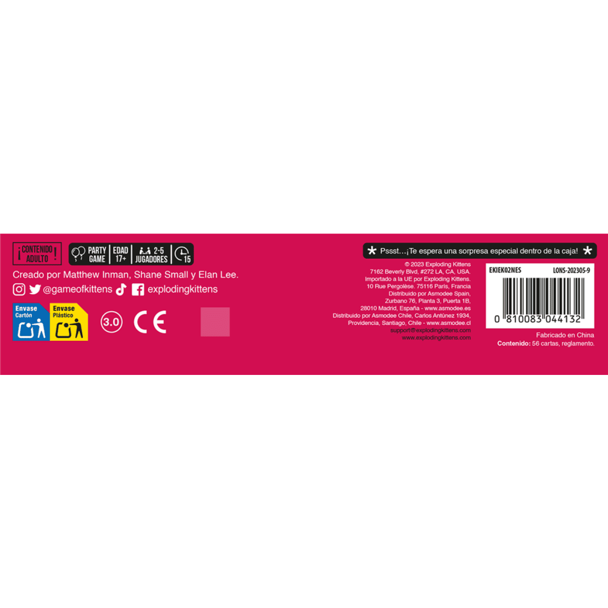 Exploding Kittens: Edición NSFW – El juego más explosivo y políticamente incorrecto de cartas. Prepárate para traicionar a tus amigos, reírte sin parar y rezar para no explotar en esta versión “Not Safe For Work” del fenómeno mundial Exploding Kittens. Esta edición no es apta para oficinas ni para jugar con niños: su humor negro y cartas provocativas la convierten en la opción perfecta para noches de risas entre adultos.