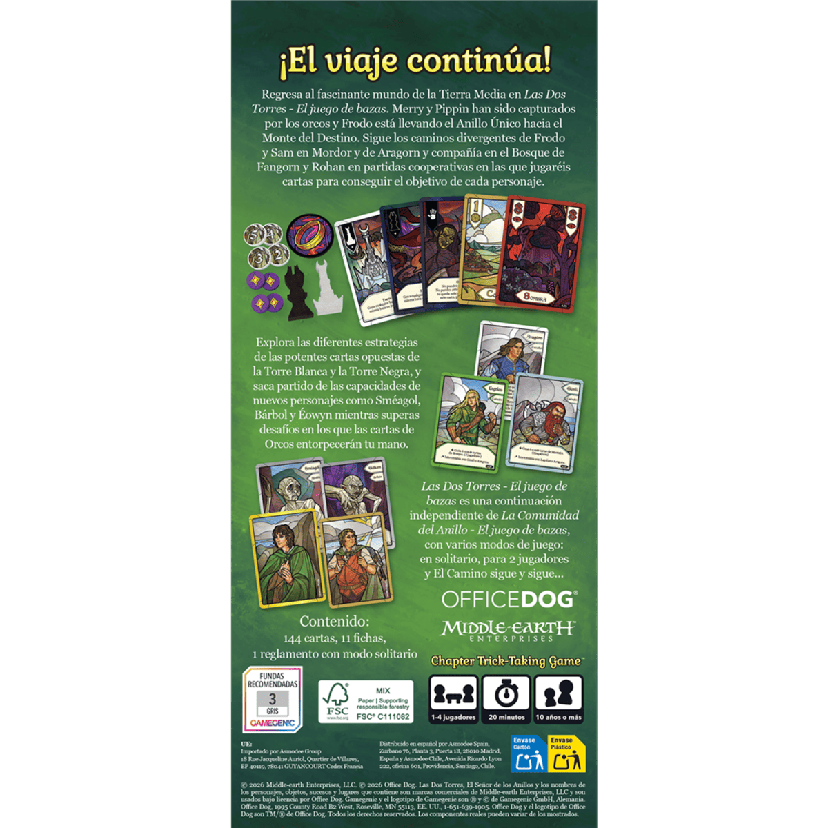 Las Dos Torres: El juego de bazas es una continuación independiente de La Comunidad del Anillo: El juego de bazas, por lo que no necesitas el título anterior para disfrutarlo plenamente. Ofrece varios modos de juego que se adaptan a cualquier situación: partidas en solitario, para dos jugadores o el modo especial El Camino sigue y sigue…, pensado para quienes desean una experiencia más completa y narrativa.
