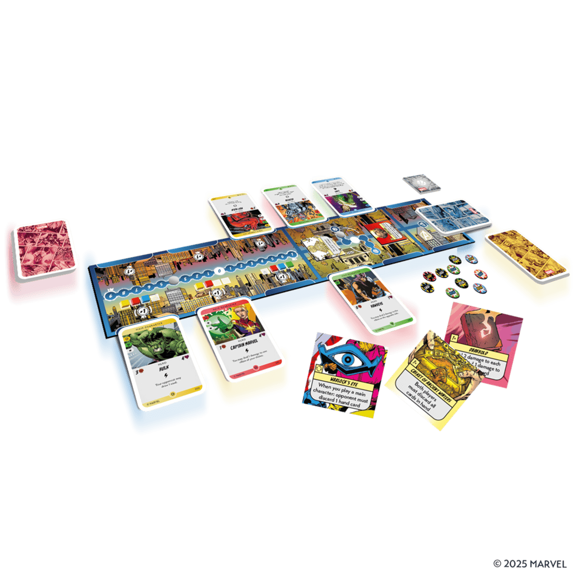En este juego de cartas asimétrico, los jugadores se dividen en dos bandos, Héroes o Villanos, y se enfrentan por el control de Nueva York. Cada facción dispone de un mazo único, con habilidades y estrategias distintas que reflejan el carácter y los poderes de los personajes del universo Marvel. La clave está en jugar tus cartas con inteligencia: aprovecha las debilidades del rival, captura artefactos poderosos y reclama lugares de importancia estratégica para inclinar la balanza a tu favor.
