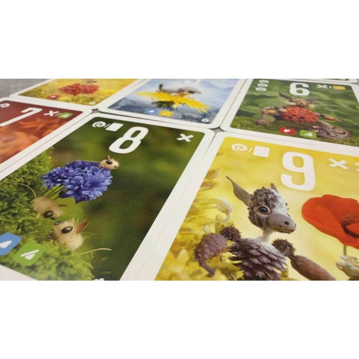 Además, las cartas ocultas adquieren un nuevo valor estratégico. En Flower Power, mantener cartas boca abajo puede resultar especialmente rentable, ya que garantizan un mínimo de 5 puntos al final de la ronda. Esto introduce un interesante dilema entre revelar cartas para completar combinaciones visibles o apostar por el misterio y asegurar una puntuación sólida.